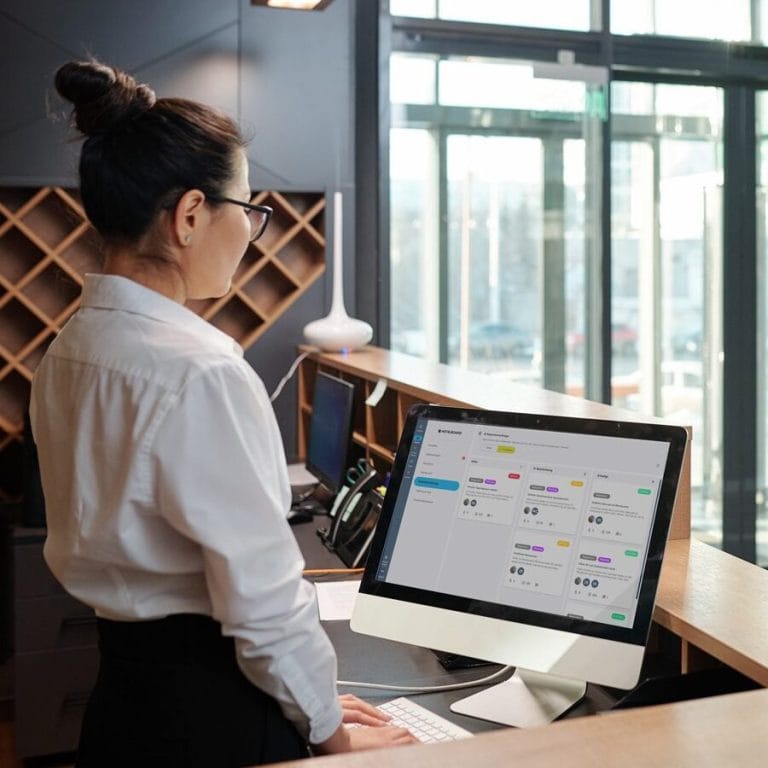 Mit der digitalen Gästemappe erhalten Sie Zugang zu unserem Hotelboard Welcome. Hier werden alle Anfragen, Buchungen und Nachrichten Ihrer Gäste zentral gebündelt. So können Sie und Ihr Team Gästen einfach antworten und To-dos innerhalb des Teams verteilen. Behalten Sie den Überblick und steigern Sie gleichzeitig Service und Effizienz!